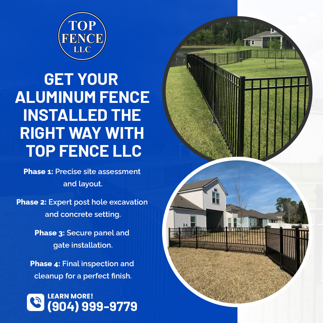 For details about aluminum fence installation in Jacksonville or to schedule a free consultation, contact Top Fence LLC at (904) 999-9779.