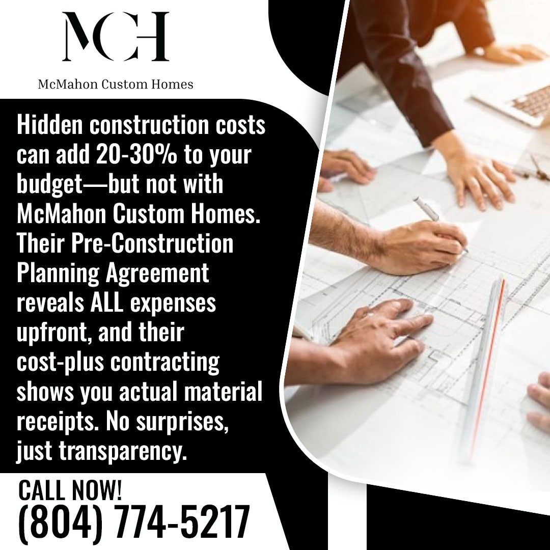 Maidens, VA - McMahon Custom Homes, LLC reveals the hidden expenses that can derail custom home budgets and catch families unprepared during construction. The company's analysis shows that undisclosed costs frequently add 20-30% to original project estimates, creating financial stress for homeowners who thought they had accurate budgets.