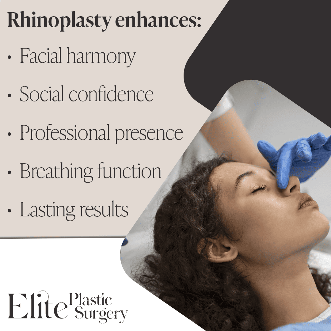 Elite Plastic Surgery emphasizes that rhinoplasty can bring change, not just in how patients look, but how they feel. From improved social ease to enhanced career confidence and better personal relationships, the benefits reach into nearly every area of life.